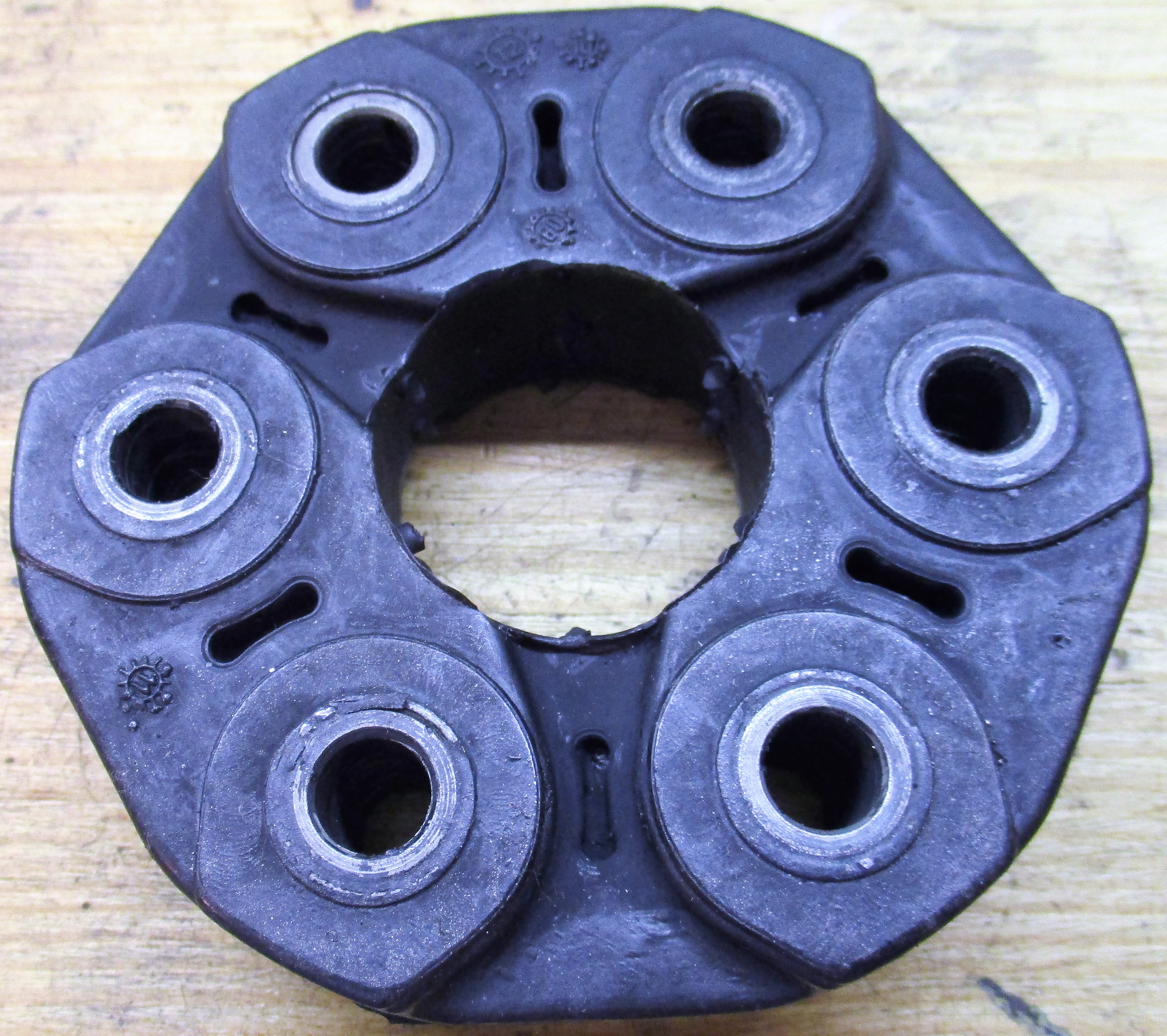Omdat de 5-versnellingsbak een flens met 3 in plaats van 4 gaten heeft, moet je de hardyschijf vervangen door een hardyschijf met 6 gaten. Het BMW bestelnummer hiervoor is 261111225624. Dit is ook de reden waarom je de cardanas van een E21 moet gebruiken. De flens op deze cardanas heeft ook 3 gaten. Het voordeel van het vervangen van de hardyschijf is dat je er nu mooi bij kunt en je er daarna weer jaren tegen kunt. Mits alles goed uitgelijnd is op elkaar. Anders gaat de hardyschijf er als eerste aan door de spanning die tijdens het rijden tussen de cardanas en de bak ontstaat.