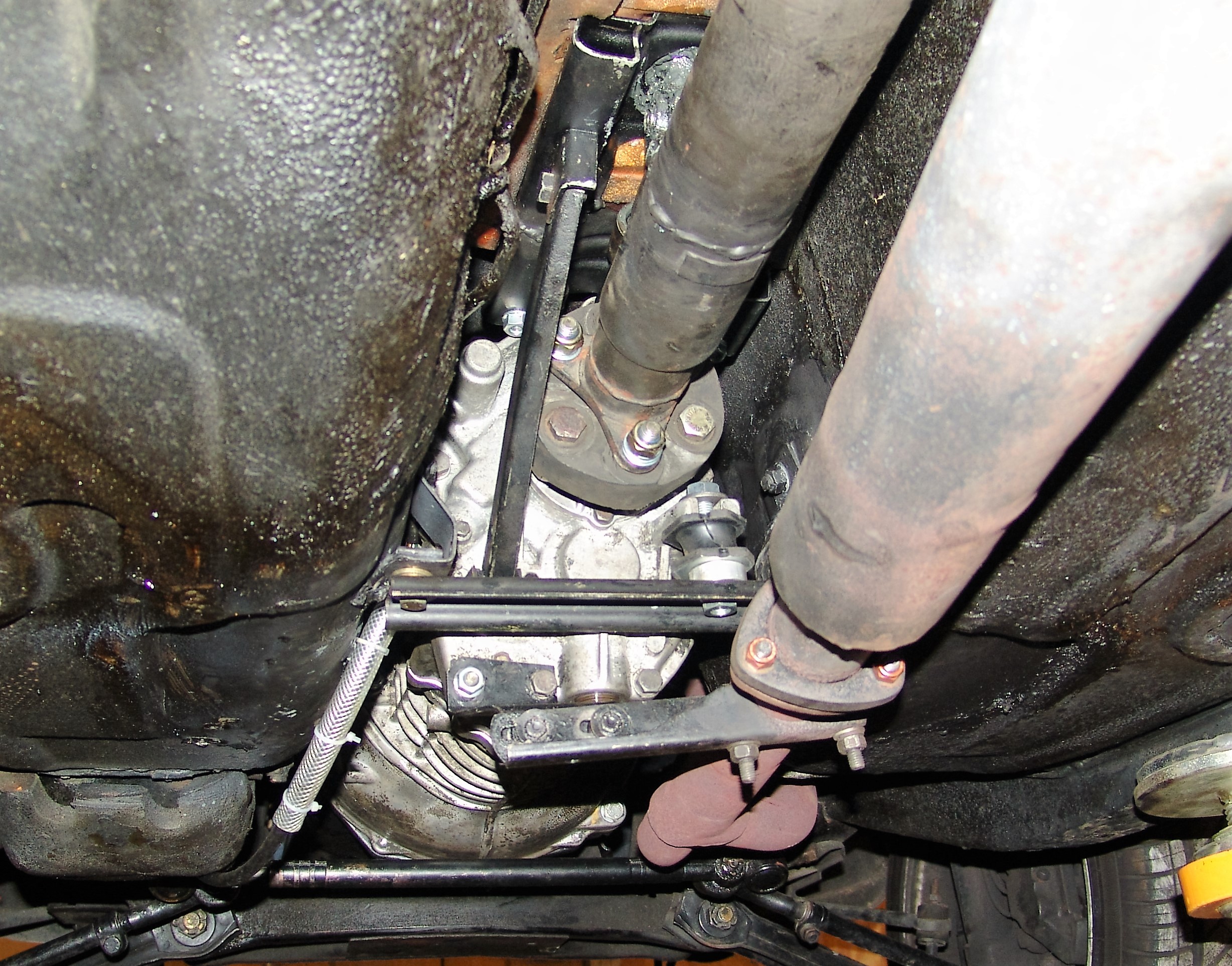 Omdat de 5 versnellingsbak langer is moet je een aangepaste steun maken of monteren. Je kunt op de bestaande steun een soort U bocht monteren (zie foto). Dit is het minste werk. Je kunt ook een steunpunt in de tunnel van de versnellingsbak lassen of met bouten en moeren door de tunnel bevestigen. Dit is wat meer werk omdat je dan ook de bekleding in je auto moet verwijderen. De laatste oplossing is wel stabieler en minder fout gevoelig.